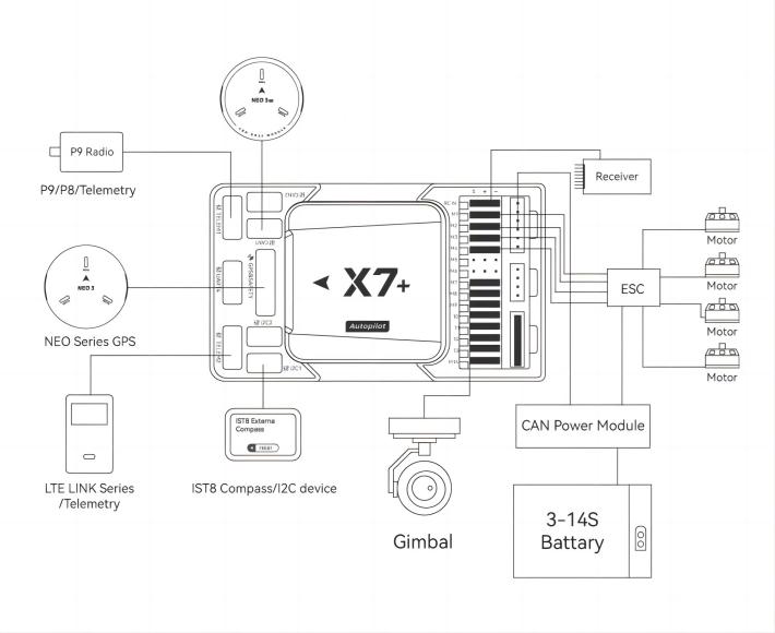 [!TIP] X7+ may not be fully compatible with ordinary GPS modules of other manufacturers. If you need to use ordinary GPS, please choose NEO V3; for a better experience, we recommend you to use UAVCAN GPS.
