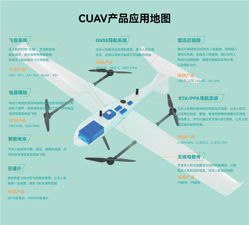 我们将带您开启CUAV产品的使用/应用之旅,并为您指引多旋翼、固定翼等多种系统形态的组装、调试和应用。如对我们的文档有任何意见或建议,请发邮件到hongle@cuav.net邮箱。